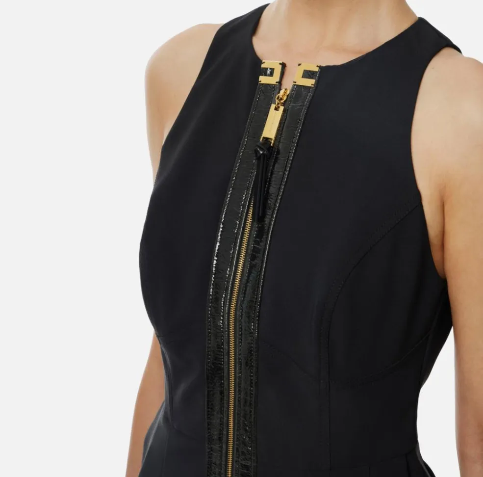 Questo abito Elisabetta Franchi è l’espressione di uno stile sofisticato che unisce linee pulite a dettagli materici esclusivi. Realizzato in doppio crêpe, un tessuto compatto e strutturato che valorizza la silhouette, è impreziosito da dettagli craquelé posizionati strategicamente per conferire luce e carattere al design.