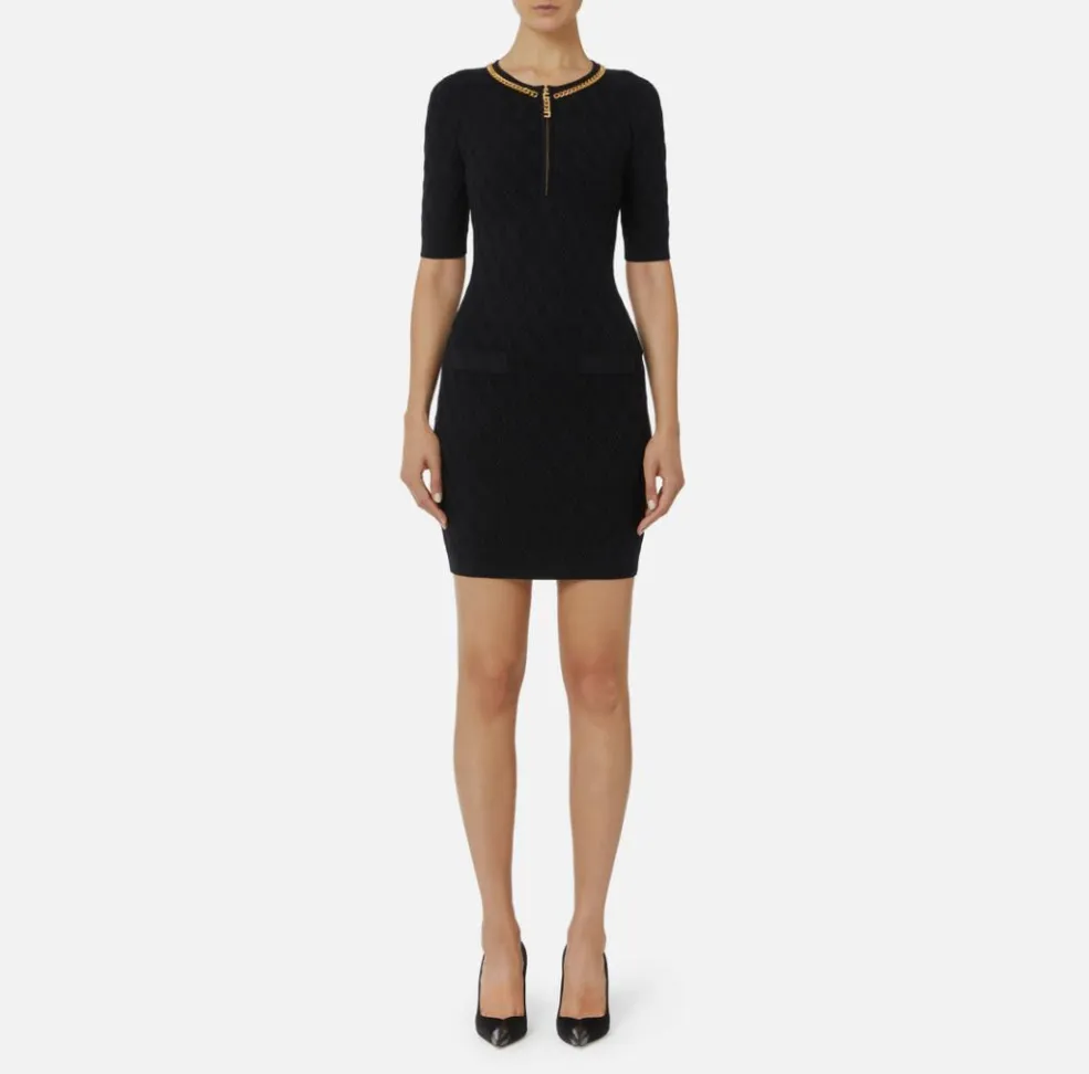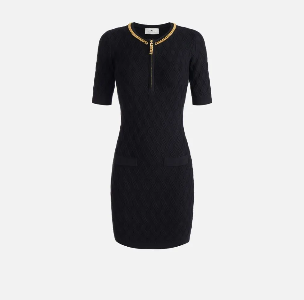 Il mini abito in maglia a rombi con dettaglio gioiello Elisabetta Franchi è un capo sofisticato che unisce eleganza, sensualità e modernità. Pensato per la donna che desidera valorizzare la propria femminilità, rappresenta un perfetto equilibrio tra design ricercato e dettagli preziosi.