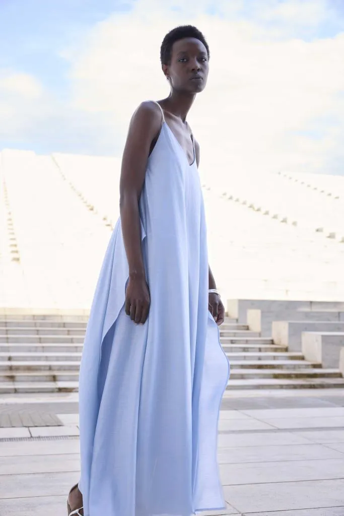 Il design essenziale e raffinato si distingue per le sue linee pulite, capaci di creare un effetto armonioso e sofisticato. La vestibilità comoda rende questo abito perfetto per affrontare le giornate più calde con stile, mantenendo sempre un aspetto curato e femminile.