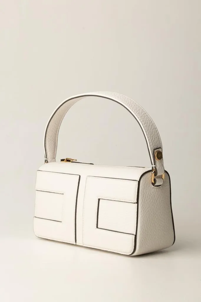 Questa borsa Elisabetta Franchi con manico superiore unisce praticità e stile in un accessorio dallo spirito moderno e deciso. Realizzata in materiale sintetico effetto pelle, si distingue per il suo design strutturato e la presenza dell’iconico logo in rilievo, protagonista assoluto del modello.