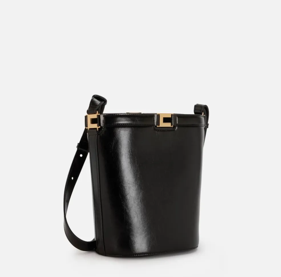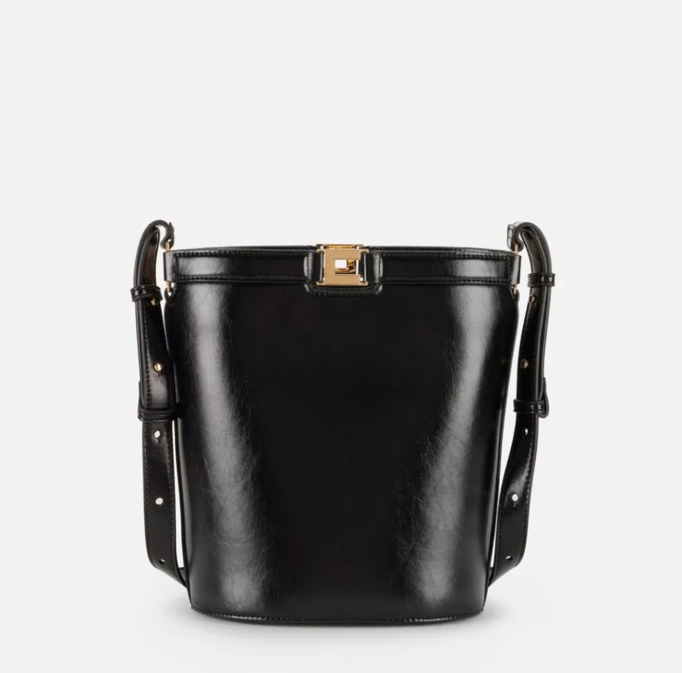 La silhouette a secchiello, intramontabile e versatile, garantisce praticità senza rinunciare all’estetica. La struttura è studiata per offrire una capienza funzionale, ideale per accompagnare la giornata con ordine e comfort. L’effetto naplak, liscio e brillante, valorizza ogni outfit e aggiunge un tocco glamour sia ai look formali che a quelli più casual chic.