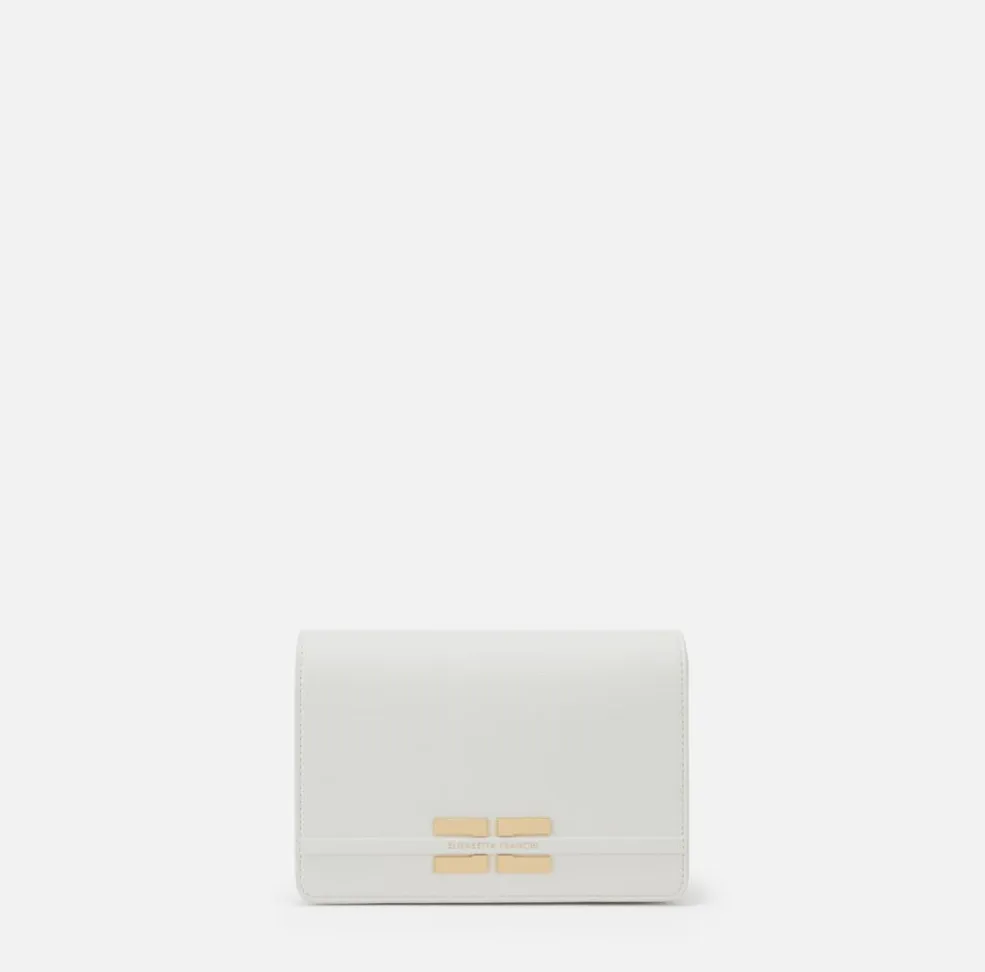 Il design pulito e raffinato è arricchito da dettagli distintivi che la rendono immediatamente riconoscibile: linee strutturate, metallerie dorate e l’inconfondibile logo Elisabetta Franchi, simbolo di femminilità e lusso discreto.