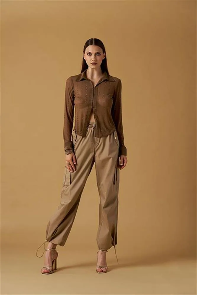 La camicia in rete No Secrets può essere indossata con un top o una bralette sotto per creare giochi di trasparenze eleganti e mai eccessive. Abbinata a pantaloni a palazzo, jeans slim o gonne midi, permette di realizzare look versatili che spaziano dal casual chic all’elegante contemporaneo.