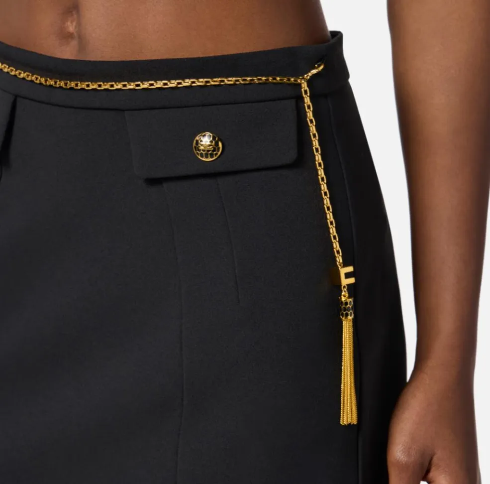 Elisabetta Franchi Gonna in doppio crêpe con catena gioiello
