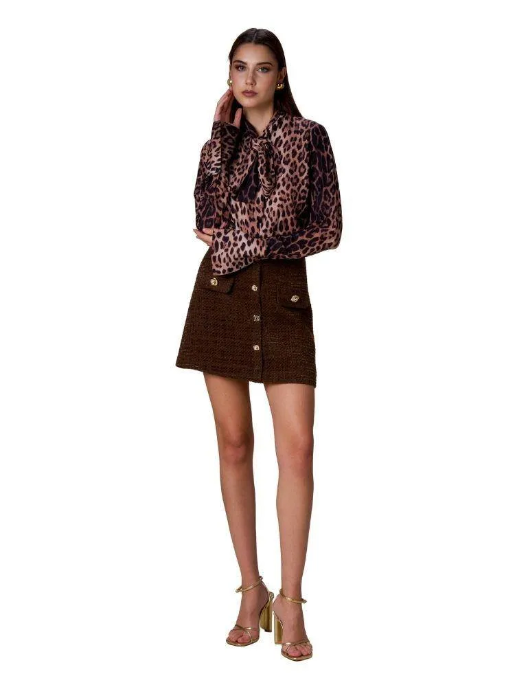 Minigonna in bouclette dal taglio dritto con bottoni dorati. Un capo dallo stile bon ton, perfetto per look eleganti e decisi.