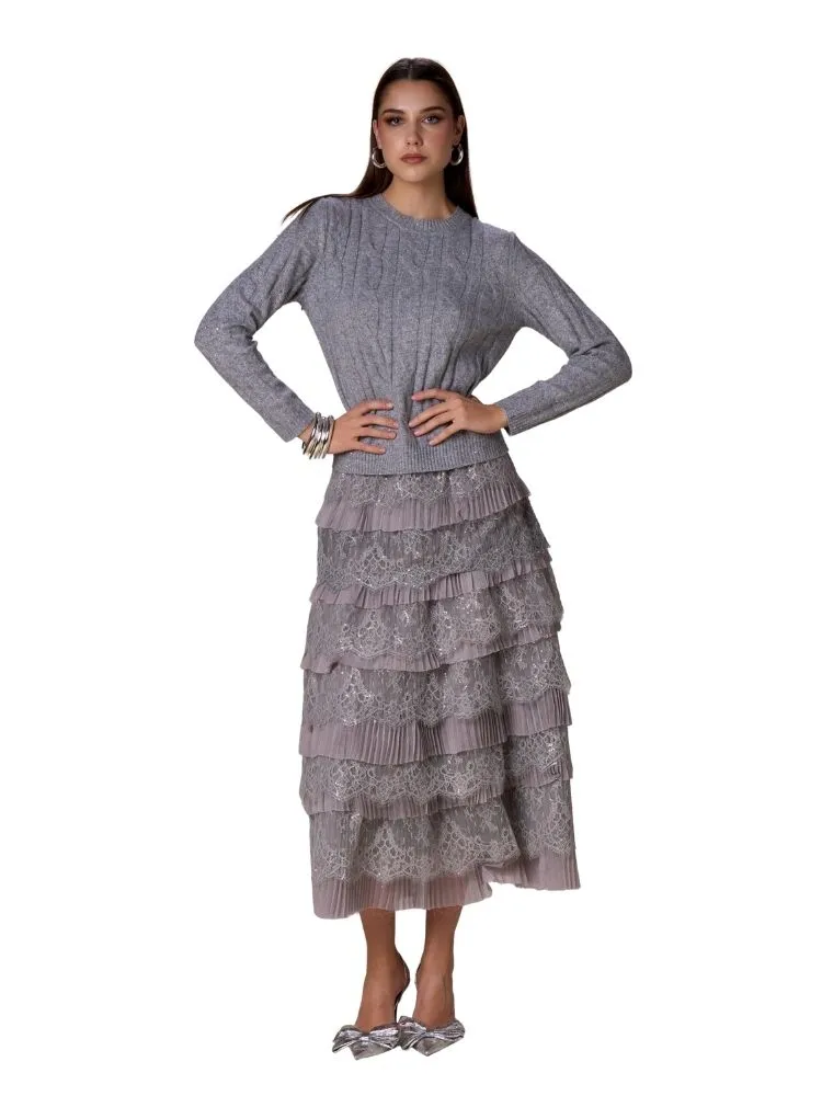 Maglia No Secrets con lavorazione a trecce e lurex. Calda, luminosa e perfetta per look femminili e sofisticati nella stagione fredda.