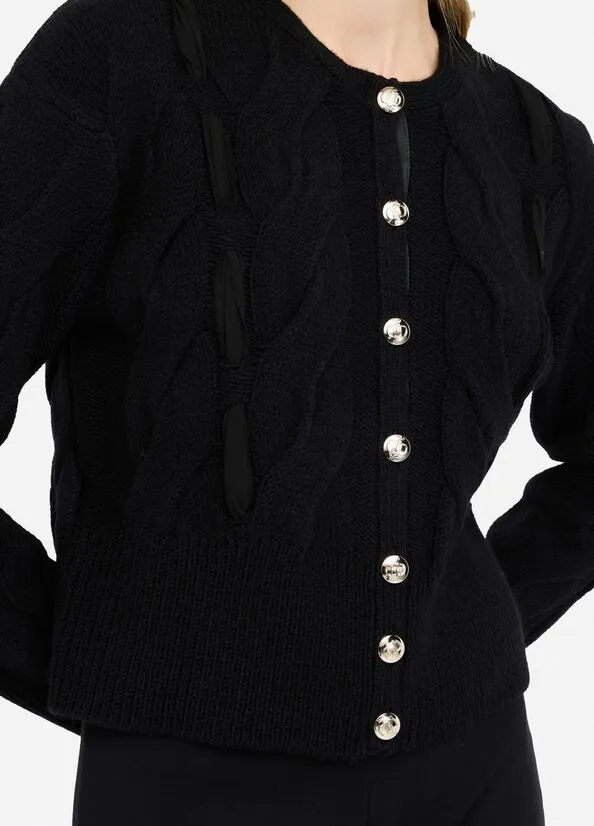 Il cardigan in lana a trecce firmato Liu Jo è la sintesi perfetta tra eleganza quotidiana e calore avvolgente. Realizzato in misto lana di alta qualità, questo capo unisce la morbidezza del filato a una classica lavorazione a trecce, reinterpretata con il gusto sofisticato e contemporaneo che caratterizza il brand Liu Jo.