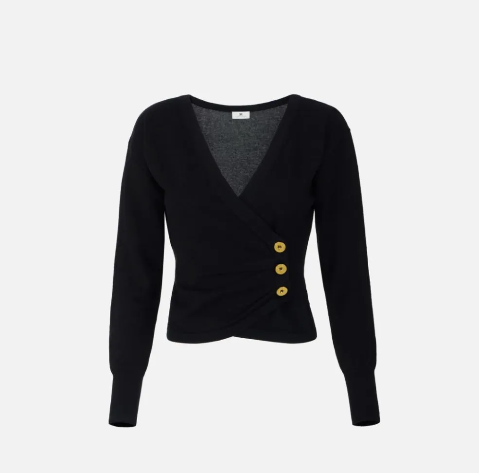 Elisabetta Franchi Maglia in misto cachemire con bottoni gioiello