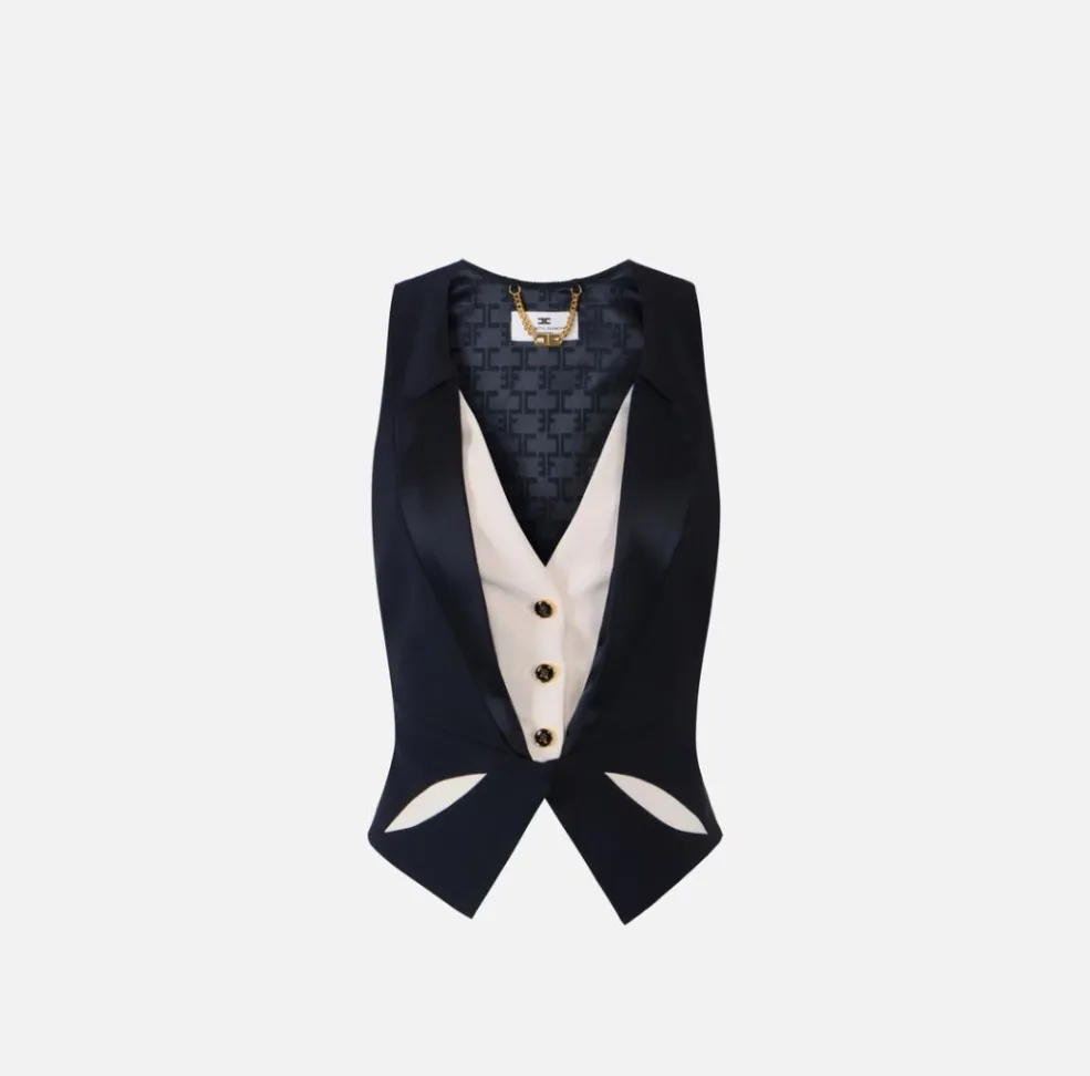 Gilet Elisabetta Franchi in crêpe leggero con cut-out bicolore, elegante e moderno, ideale per look sofisticati e di carattere.