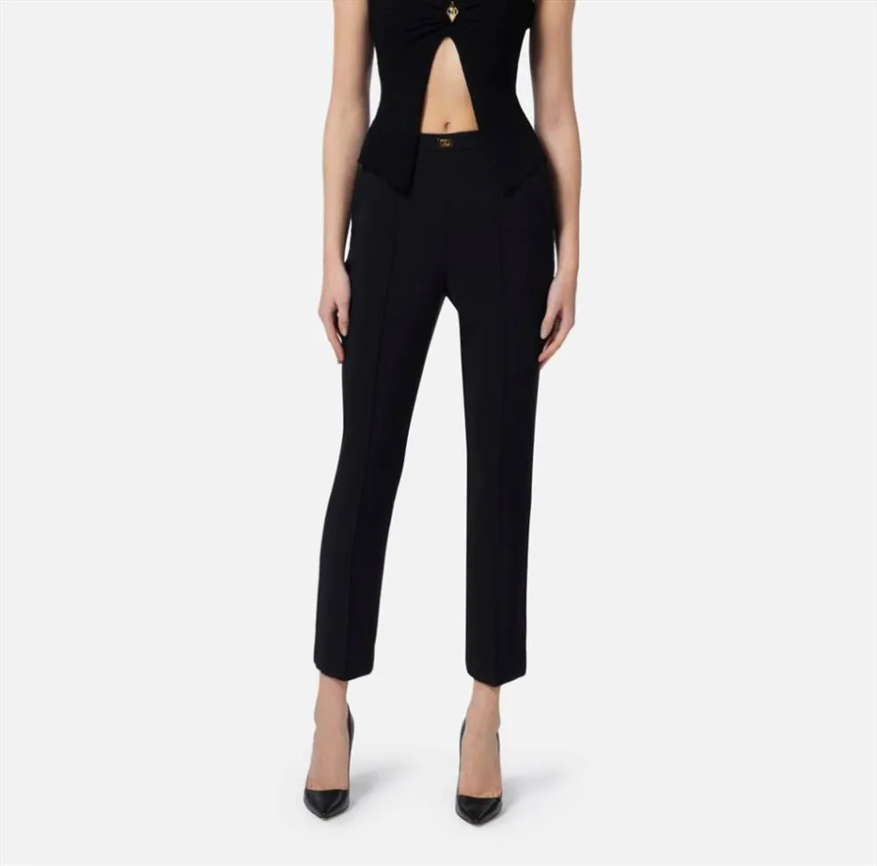 Pantaloni in crêpe con tasche e placca logo Elisabetta Franchi