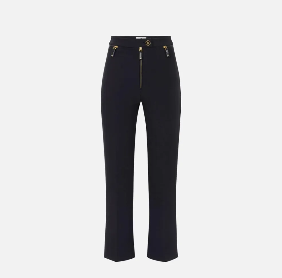 I pantaloni in doppio crêpe Elisabetta Franchi rappresentano un must-have della collezione, ideali per chi desidera un capo versatile, dal taglio sartoriale e impeccabile. Realizzati in doppio crêpe tecnico, offrono struttura e comfort, accompagnando la silhouette con eleganza e senza costrizioni.