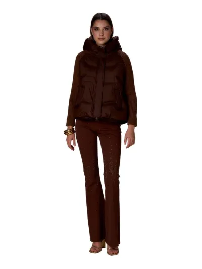 Scopri il piumino corto firmato No Secrets, un mix perfetto di stile e praticità per affrontare la stagione fredda con un look raffinato e contemporaneo. Questo capospalla unisce la struttura avvolgente del piumino trapuntato alla raffinatezza delle maniche in maglia a coste, creando un effetto materico di grande impatto.