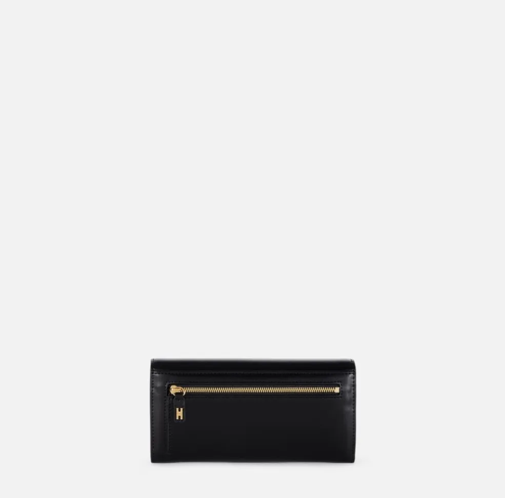 Elegante e funzionale, questo portafoglio Elisabetta Franchi è il complemento perfetto per ogni look sofisticato. Realizzato in materiale sintetico effetto pelle con una texture lucida e raffinata, il design è impreziosito dalla placca frontale in metallo dorato con logo, che aggiunge un tocco di luminosità e riconoscibilità.