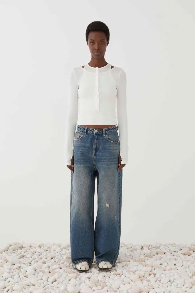 Le maniche lunghe e la linea asciutta rendono questo top estremamente versatile, perfetto da indossare da solo o come base per look stratificati sotto blazer, giacche o cardigan. Un capo ideale per completare outfit casual-chic o più urbani, da abbinare a jeans, pantaloni sartoriali o gonne a vita alta.