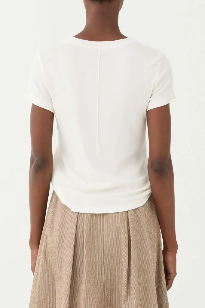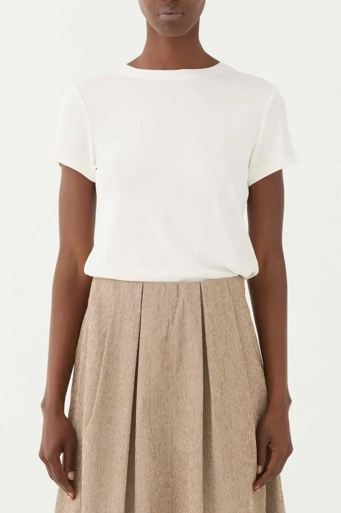 tatto, la T-shirt scivola delicatamente sulla silhouette senza segnare,