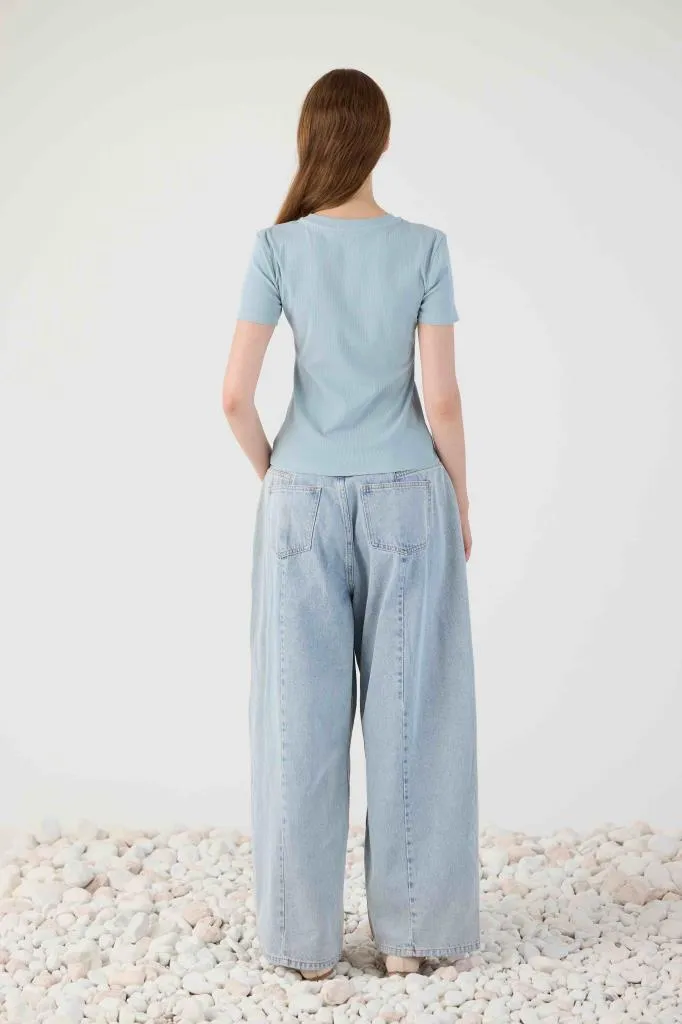 Top Eleh a maniche corte in maglia elasticizzata, dal design essenziale e femminile. Perfetto per valorizzare la silhouette con comfort.